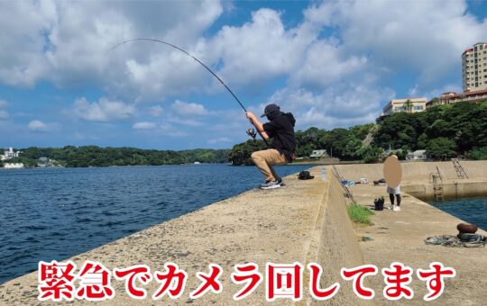 ほんのさっき!堤防で巨大シイラ狙いが一変とんでもない引きの魚が食い付いてきた!!!