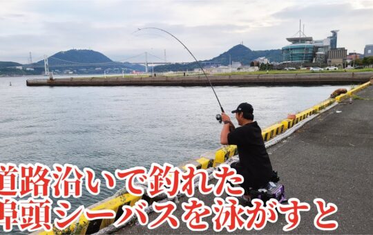 道路沿いの埠頭で朝まずめに釣れたシーバスを深海60mまで泳がせた結果!